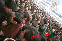 洛陽特大火災遇難者家屬認領(lǐng)尸體的工作27日開始,等待已久的人們一擁而入。中新社圖 慎重 攝