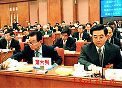 李瑞環(huán)、胡錦濤出席人大會(huì)議