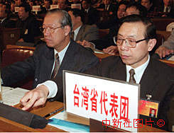 臺(tái)灣省代表張水均、和香港代表袁武在全國人大閉幕會(huì)上
