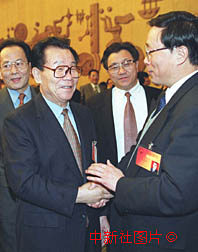 李瑞環(huán)與全國人大天津代表暢談天津發(fā)展大計 2000年3月7日 08:49 ![]()