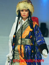 北京嘉里中心飯店二十二日晚在京舉辦中國模特赴德國展示的歷代和民族服飾作品。圖為色彩艷麗的中國藏族服飾。中新社圖 東方 攝