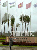 中國海南省派出警察在博鰲亞洲論壇指揮交通,確保這個國際組織的成立。中新社記者 賈國榮 攝