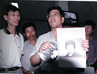 法輪功受害者家屬展示親人生前照片