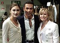 圖文:布什侄女上T臺 米蘭時裝展成亮點(diǎn) 2001年3月1日 16:39 勞倫(左)、設(shè)計師馬修羅和她的母親(路透社) 中新網(wǎng)米蘭3月1日消息:米蘭時裝周進(jìn)行到星期三時,人們發(fā)現(xiàn)了一位T臺新秀——勞倫·布什(Lauren Bush)。16歲的她可是美國總統(tǒng)小布什的侄女哦。 微笑中透出一點(diǎn)點(diǎn)緊張,勞倫在蓋依·馬修羅(Gai Mattiolo)的2001/2002秋冬時裝專場上展示了略有些性感的外衣。馬修羅是一位以設(shè)計性感晚禮服而知名的羅馬設(shè)計師。 有媒體認(rèn)為,勞倫在臺上略顯稚嫩,還缺乏自如的專業(yè)風(fēng)范。 勞倫是美國總統(tǒng)布什的兄弟尼爾的女兒,而且已經(jīng)是一位攝影模特兒。 “我找她來為我的設(shè)計作展示,因?yàn)槲矣X得這個年輕姑娘有一種青春的活力,”馬修羅在勞倫上臺之前對媒體記者說。 勞倫的緊張情緒在這場時裝展進(jìn)入尾聲時再也看不到了,馬修羅出來向觀眾們致意,旁邊伴隨著勞倫。她笑得很燦爛。而她的媽媽,則一直在為她鼓掌。 |