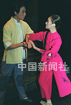 中央芭蕾舞團(tuán)在三.八婦女節(jié)來(lái)臨之際,為北京的觀眾演出一九六四年創(chuàng)作的大型芭蕾舞劇《紅色娘子軍》,圖為常青指路一場(chǎng)戲。中新社記者 張勤 攝
