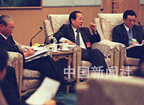 錢其琛副總理八日參加全國政協(xié)臺灣代表團討論,答復(fù)臺灣委員提出的問題。中新社記者 宋吉河 攝