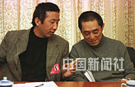 中國著名電影導(dǎo)演馮小寧與張藝謀,十一日參加全國政協(xié)九屆四次會議文藝組討論時(shí),相互切磋拍攝手法。中新社記者 劉可耕 攝