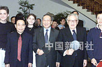 圖文:中美為紀(jì)念“乒乓外交”三十年干杯 2001年3月19日 08:00 ![]() 中共中央政治局常委、國(guó)務(wù)院副總理李嵐清十八日在北京釣魚(yú)臺(tái)國(guó)賓館出席“中美乒乓外交”三十周年招待會(huì)時(shí),與美國(guó)前國(guó)務(wù)卿基辛格共同揮拍比賽乒乓球后合影。中新社記者 李剛 攝 ![]() 中共中央政治局常委、國(guó)務(wù)院副總理李嵐清十八日在北京釣魚(yú)臺(tái)國(guó)賓館與出席“中美乒乓外交”三十周年招待會(huì)的美國(guó)前國(guó)務(wù)卿基辛格共同舉杯祝賀。中新社記者 李剛 攝 中新社北京三月十八日電(記者譚宏偉)中美雙方有關(guān)人士今晚聚會(huì)在北京釣魚(yú)臺(tái)國(guó)賓館六號(hào)樓,紀(jì)念發(fā)生在三十年前的一個(gè)重大歷史事件——乒乓外交。 一九七一年的春天,中美兩國(guó)在經(jīng)歷長(zhǎng)期隔絕與對(duì)立之后,由于雙方領(lǐng)導(dǎo)人的明智和遠(yuǎn)見(jiàn),也由于民間人士的熱情和主動(dòng),在特定的歷史條件下,實(shí)現(xiàn)了世人沒(méi)有想到的美國(guó)乒乓球隊(duì)的訪(fǎng)華,打開(kāi)中美交往的大門(mén)。這就是被周恩來(lái)總理稱(chēng)之為小球推動(dòng)大球的著名的“乒乓外交。” 今晚,釣魚(yú)臺(tái)六號(hào)樓里,春意融融。中國(guó)副總理李嵐清和美國(guó)前國(guó)務(wù)卿基辛格博士以及依然健朗的許多位當(dāng)年參加“乒乓外交”的外交界、體育界人士,應(yīng)邀前來(lái)參加紀(jì)念中美“乒乓外交”三十年招待會(huì)。 大廳內(nèi)的乒乓桌最為引人注意,李嵐清和基辛格在短暫會(huì)晤后,饒有興致地來(lái)到桌前揮拍打球,隨后,兩人還特意手握球拍一起合影;粮癫┦窟為在場(chǎng)的兩名中國(guó)學(xué)生的球拍簽名留念。中央外辦主任劉華秋今晚球興很濃,他不僅與基辛格一起打球,而且還與幾名中美兩國(guó)的中學(xué)生分別進(jìn)行了單打和雙打。 中國(guó)人民對(duì)外友好協(xié)會(huì)會(huì)長(zhǎng)陳昊蘇在熱情洋溢的致辭中表示,中國(guó)人民對(duì)外友好協(xié)會(huì)將與雙方的民間團(tuán)體一道,為推動(dòng)中美關(guān)系的健康發(fā)展盡到努力。 三十年前首次秘密訪(fǎng)華的基辛格當(dāng)時(shí)曾下榻在六號(hào)樓,這里成就了他外交生涯中得意之筆。他在致辭中祝愿美中關(guān)系今后能夠得到不斷鞏固和加強(qiáng)。 (完) |