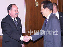國務院副總理錢其琛十九日在紐約人壽保險公司會見了美國工商金融界人士。美國商會負責人安德爾代表工商金融界歡迎錢其琛訪美,并表示,美工商金融界堅定支持發(fā)展對華經貿關系,希望美中關系在新世紀得到更大發(fā)展。中新社圖 陳建 攝