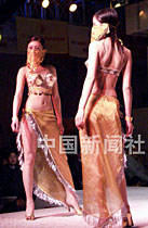 在上海舉行的第六屆“中國國際內(nèi)衣、沙灘裝及輔料展覽會”,向人們演繹了內(nèi)衣流行趨勢,圖為“黃金時代”主題。中新社記者 潘索菲 攝