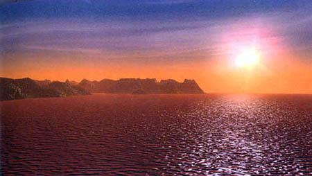 圖文:科普大片《宇宙與人》全文解說詞 2001年3月27日 11:03 ![]() 在地球的某個時期,海洋中充滿了被氧化的鐵銹,海水呈現(xiàn)出紅色 物質的宇宙能夠演化出生命,目前我們惟一所知道的就是我們自己的太陽系,但準確地說,生命很吝嗇地只選擇了它的第3顆行星———地球,生命在這顆星球上誕生并且改造這顆星球長達近40億年。從生態(tài)上看,地球的美麗是獨一無二的,然而今天的地球因為有了人類,就不僅是生態(tài)星球,同時還是一顆文明星球。 地球上惟一直立行走的智能生物———人類,今天已經非常輕松地生活在這顆行星上,但是,從古老文明走到現(xiàn)代文明,人類付出了巨大的代價。而二者之間的跨越的關鍵,恰恰要取決于人類認識宇宙的深度。 望遠鏡的原始創(chuàng)意 盡管有很多史前文明都顯示了人類認知宇宙的興趣,但在中國四川西部三星堆發(fā)現(xiàn)的3000多年前的青銅器,大概是表現(xiàn)得最執(zhí)著的了。這是一個向往飛翔的古老集體,鳥是他們普遍的偶像,鳥的眼睛被深深地崇拜著,而他們自己的眼睛,更被夸張地塑造了。這可能是人類最早的期望通過眼睛這個器官的延長,而求索宇宙的向往,這也許是望遠鏡的最原始的創(chuàng)意。 事實是,這種愿望終于在400多年前得到了實現(xiàn)。人類的眼睛真的延長了,望遠鏡給人類文明所起的作用,可以說超過一切其它單件的工具,因為沒有它,就沒有可能了解天體的基本運動,也就沒有對神的勇敢的否定,就沒有可能在天體的觀察中得到的牛頓定律,也就沒有以這個定律為基礎的現(xiàn)代工業(yè)社會。人類在400多年前通過望遠鏡在宇宙中獲得了駕馭物質的法則,于是,我們的生活就從此日新月異。 太陽是我們擁有的一顆恒星。今天,人類對宇宙已經看得更遠,理解得更深刻,這種理解使我們已經能夠認識宇宙作為一個整體的物質運動,并且更加明確地認識到我們是物質運動的結果,而宇宙中的星辰,就是全部物質運動的最重要的動力。 我們把自己擁有的一顆恒星叫做太陽,它的光輝對地球的生命是最根本的,陽光在地球表面已經掠過了40多億年,今天的生態(tài)就是純粹陽光的塑造,這種塑造使得地球擁有了一個長達40億年的生命鏈,這個鏈條其實就是固體的陽光,因為生命的本質的含義就是把光能變成物質的新陳代謝。 現(xiàn)在,我們可以精確地知道,這顆價值非凡的發(fā)光體非常的巨大,它的直徑相當于110個地球,它的表面是6000度的高溫,經過一億五千萬公里空間的傳輸,地球只得到它的光輝的5億分之一,但這已經足夠了。 它的質量相當于33萬個地球,但盡管這么大,如果全部是煤,發(fā)出同樣的光和熱只能燒幾千年。然而,它穩(wěn)定地燒了50億年,是什么東西這么經燒呢? 人類的燃燒概念是火,用一堆樹枝燃燒幾個小時,這就是我們的獲取能量的概念。這個基本的方式一直主導著人類的文明,但這種燃燒根本沒有使用宇宙中真正的能量寶庫———原子核,在本質上,木頭的燃燒只是原子們互換位置放出一些化學能,燃燒后,原子核的質量一點沒有減少。 而太陽的燃燒和篝火原理完全不同,它在讓原子核燃燒。愛因斯坦用著名的質能轉換的公式計算出,核能量能達到普通化學能量的2000萬倍。宇宙中最高效的核能是氫聚變成氦,也就是4個氫原子聚變成一個氦原子,這個過程可以有千分之七的物質轉換成能量,雖然只有千分之七,但物質的能量太大,如果把1000克氫原子中千分之七的物質轉換成能量,就相當于4000噸石油和6000噸煤。 在一節(jié)只能燒幾分鐘的樹枝中所蘊藏的核能,足以把一盞100瓦的燈泡點亮100萬年。 太陽就是一個奢侈的使用核能的天體。 宇宙的物質結構 那么,怎樣才能燃燒原子核呢?這就要看我們宇宙的物質結構了。物質本身沒有行為,而物質中蘊含了4種力卻決定了宇宙的一切。其中最強的是強力,它存在于強子之中,核能就是靠它產生的,但這種力只在原子核的直徑范圍起作用,所以,產生核能就必須讓它們相互接觸,也就是核聚變。 核聚變必須有中子,而另一種弱力,能使質子衰變成中子,并釋放出射線,這個力是核聚變不可缺少的。 而能否使核聚變發(fā)生,關鍵卻在于電磁力,它比強力弱100多倍,不過它延伸得比強力遠,所以一般情況下強力被電磁力封閉著,如果突破不了電磁力,就不會有核聚變。其實電磁力是一種非常溫和而美好的力,它天生就有正和負,永遠不會過分,所謂陰陽生萬物,因此它就構成了宇宙中最豐富的物質演化,包括生命。 引力是最弱的力,在單個原子中比電磁力弱幾萬萬億倍,但宇宙對它幾乎沒有限制,因此它將會以多勝少,最終統(tǒng)治宇宙。 構成我們生命的主要是電磁力,強力和弱力被封閉著,而引力在我們身體中可以被忽略,但我們的身體卻能感覺到地球的引力,因為引力會隨著物質的增大而顯示出來。我們舉起重物時,就是肌肉中的電磁力在和地球的引力做抗衡,人們很多的鍛練方法,就是用地球的引力來增長我們肌肉中的電磁力的能量。 是引力最終打敗電磁力,是當一個物體變得像太陽這么大的時候,這不僅能控制地球圍繞它旋轉,同時它的每個原子的引力都向中心塌縮并輸送壓力和熱量。而由于太陽的質量巨大,因此它的引力就可以積累到極高的溫度,溫度越高,原子核運動速度越快,當達到1000萬度時,原子核的電磁力將無法阻擋高速奔跑的原子核相互碰撞的