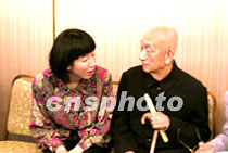 一代圍棋名家吳清源與前中國(guó)棋手、現(xiàn)在代表韓國(guó)出戰(zhàn)的芮乃偉女士(左),在第十四屆富士通杯世界圍棋冠軍賽抽簽儀式上交談。中新社圖 陶光雄 攝