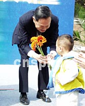 楊振寧在北京清華大學(xué)與兒童在一起 2001年4月26日 21:25