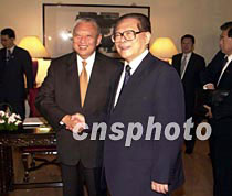 圖文:江澤民出席董建華午宴 2001年5月9日 16:04 ![]() 江澤民五月九日出席香港特區(qū)行政長官董建華舉辦的午宴上與董先生親切握手。中新社圖 任海霞 攝