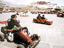 圖:布達(dá)拉宮前的廣場(chǎng)成為人們游樂(lè)的場(chǎng)所 2001年5月9日 19:55 ![]() 西藏拉薩市布達(dá)拉宮前的廣場(chǎng),成為休假日人們游樂(lè)的場(chǎng)所。兩位藏族兒童假日在廣場(chǎng)上開(kāi)著小卡丁車,玩得十分高興。中新社圖 吳新華 攝