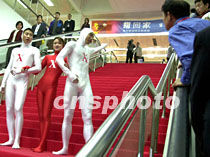 男女模特十日在北京國(guó)際展覽中心為觀眾指路,歡迎參觀剛開幕的國(guó)際科技博覽會(huì)。中新社記者 賈國(guó)榮 攝