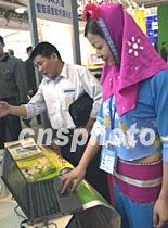 一名福建惠安女到北京參加五月國際科技博覽會(huì),她對(duì)筆記本電腦演示的智能語音軟件產(chǎn)生了興趣。中新社記者 賈國榮 攝