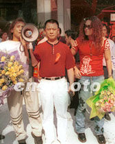 臺(tái)灣歌手齊泰、迪克·牛仔等,將于五月十二日在廣州舉行一場音樂創(chuàng)世紀(jì)大型演唱會(huì)。圖為齊泰、迪克牛仔十一日抵穗與廣州歌迷見面。中新社圖 劉衛(wèi)勇 攝