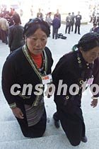 西藏自治區(qū)七屆人大四次會議13日拉薩舉行,出席會議的藏族婦女代表手挽手步入西藏人民大會堂。中新社記者 滿會喬 攝