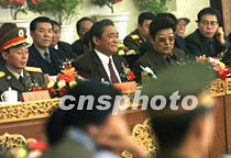 熱地說,統(tǒng)一與分裂是西藏最大的政治分野 2001年5月24日 07:25 ![]() 中國紀念西藏和平解放五十周年座談會五月二十三日在拉薩舉行,全國人大常委會副委員長帕巴拉·格列朗杰(右二)、西藏自治區(qū)人大主任熱地(右三)等出席座談會。中新社記者 滿會喬 攝