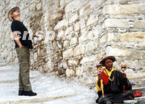 位于拉薩市郊的哲蚌寺迎來眾多的游客,一位外國游客和一位轉(zhuǎn)經(jīng)的藏民各自沉浸在自己關(guān)注的世界中。中新社記者 滿會(huì)喬 攝