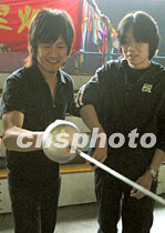明星老狼、高明俊隨鳳凰衛(wèi)視“申奧萬(wàn)里行”來(lái)到遼寧體育運(yùn)動(dòng)學(xué)校體操館,參加在這里舉辦的各種活動(dòng)。中新社圖 魏孝明 攝