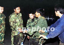 浙江省玉環(huán)縣的巡邏隊(duì)員夜間在刑事案件多發(fā)地段巡查。這支在“嚴(yán)打”中協(xié)助警方治理社會治安的夜巡隊(duì)伍,已抓獲犯罪嫌疑人六百五十六名,協(xié)助警方破案一百五十四起。中新社圖 於建偉 攝