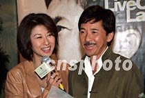 實力派歌星林子祥11日在香港舉行「最愛接觸林子祥演唱會」記者會,其妻葉倩文在記者會上為林子祥打氣。演唱會于7月26-28日在香港紅館舉行。中新社圖 鄧慶樂 攝