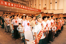 十二日上午,第二屆“河南省杰出(優(yōu)秀)青年衛(wèi)士”暨河南省優(yōu)秀青少年維權(quán)崗表彰大會(huì)在河南省人民會(huì)堂舉行,近百名在“嚴(yán)打”中表現(xiàn)突出的青年人得到表彰。中新社圖 慎重 攝