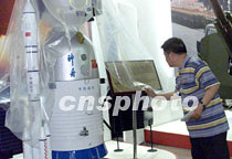 圖:“神舟”飛船模型亮相建黨圖片展 2001年06月18日 17:08 ![]() 一九九九年飛行試驗(yàn)取得圓滿成功的“神舟”飛船模型即將在20日開幕的中共建黨80周年圖片展亮相。中國第一艘無人太空船“神舟號”試飛成功是中國航天史上一項(xiàng)重要的里程碑,同時(shí)也標(biāo)志著中國將進(jìn)入載人航天時(shí)代。中新社記者 滿會喬 攝