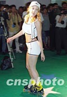 圖:外籍模體在育用品博覽會上 2001年07月07日 17:36 ![]() 正在北京舉行的2001中國國際體育用品博覽會上,各參展商在展臺上推出商品展示。圖為曼奴服飾集團(tuán)展位上身穿運動服的外國模特。中新社記者 錢興強 攝
