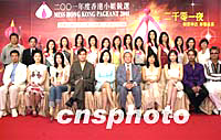 ![]() 2001年度香港小姐選美決賽十二位佳麗11日出席會(huì)晤大會(huì)評(píng)判記者會(huì)。圖為大會(huì)評(píng)判團(tuán)及當(dāng)晚表演歌星與眾佳麗聚集一堂。中新社圖 鄧慶樂(lè) 攝