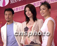 歌星張學(xué)友、陳慧琳及應(yīng)屆華裔小姐廖碧兒11日在香港出席港姐決賽十二位佳麗會晤大會評判記者會,他們將于15日晚舉行的決賽為大會作表演嘉賓。中新社圖 鄧慶樂 攝