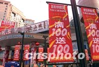 北京申辦2008年奧運(yùn)獲勝后,一些商家抓住機(jī)會(huì)紛紛推出各種形式的促銷活動(dòng),給狂喜中的人們一份新的驚喜。中新社記者 毛建軍 攝
