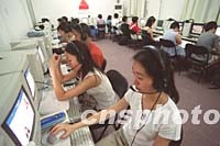 北京艾伊亞行星英語教育培育中心,今夏在北京大力推廣澳大利亞英語教學(xué)專家研發(fā)的學(xué)習(xí)英語的多媒體軟件。這種可與劇中人插話、對(duì)話、跟讀的學(xué)英語方法吸引了大量的年青人參加。中新社記者 王麗南 攝