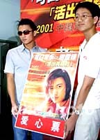組圖:謝霆鋒在上海為演唱會(huì)做前期推廣 2001年07月19日 21:16 ![]() 香港歌手謝霆鋒七月十九日在上海為其演唱會(huì)做前期推廣!翱煽诳蓸(lè)謝霆鋒活出真精彩2001中國(guó)巡回演唱會(huì)”將于七月二十八日在可容納八萬(wàn)人的上海體育場(chǎng)舉行。謝霆鋒希望屆時(shí)更多的歌迷能了解他、接近他。中新社記者 潘索菲 攝 ![]() 新天王謝霆鋒十九日在上海向上海慈善基金會(huì)慈善助學(xué)的受助學(xué)生代表贈(zèng)送本月二十八日在此間舉行的“可口可樂(lè)謝霆鋒活出真精彩演唱會(huì)”的門(mén)票。中新社記者 潘索菲 攝