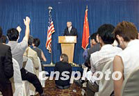 圖文:鮑威爾召開(kāi)記者招待會(huì)介紹此次訪(fǎng)華情況 2001年07月28日 20:06 ![]() 正在北京訪(fǎng)問(wèn)的美國(guó)國(guó)務(wù)卿鮑威爾二十八日傍晚在他下榻的北京國(guó)際俱樂(lè)部飯店回答記者提問(wèn)。中新社記者 毛建軍 攝 ![]() 二十八日傍晚在北京舉行的美國(guó)國(guó)務(wù)卿鮑威爾訪(fǎng)華記者招待會(huì)吸引了眾多中外媒體代表到場(chǎng)采訪(fǎng)。中新社記者 毛建軍 攝