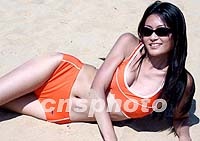 正在青島舉行的戴安娜2001世界精英模特大賽中國預選賽暨金沙灘模特大賽,十一日在金沙灘景區(qū)拍攝外景。圖為一名身穿泳裝的模特在沙灘上拍照。 中新社記者 錢興強 攝