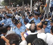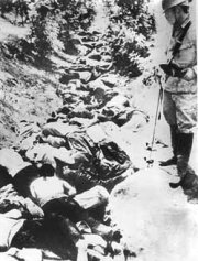 圖文:抗戰(zhàn)勝利56周年 過半日閣員到靖國神社 2001年08月15日 14:19 ![]() 支持和反對首相小泉參拜靖國神社的團體爆發(fā)沖突 ![]() 今天是抗戰(zhàn)勝利56周年,圖為南京大屠殺一幕 中新網(wǎng)東京8月15日消息:在一片怒哮聲中,日本5名閣員在戰(zhàn)敗56周年到靖國神社參拜。在神社外,支持和反對參拜神社的團體爆發(fā)沖突。 日皇明仁夫婦和早已到靖國神社參拜的首相小泉純一郎則出席官方儀式,悼念戰(zhàn)爭死難者,對戰(zhàn)爭表達(dá)“最深切遺憾”。 供奉著戰(zhàn)爭亡魂的靖國神社今早熱鬧起來,一些老兵和陣亡士兵遺屬,大清早便排隊進(jìn)入神社內(nèi)園參拜。同樣是一早現(xiàn)身神社的,還有日本農(nóng)水大臣武部勤,他是小泉政府中,第六位來到神社參拜的高級官員。 另外4名內(nèi)閣閣員和120名國會議員,今天也來到神社參拜,包括防衛(wèi)特任大臣中谷元、總務(wù)大臣片山虎之助、經(jīng)濟產(chǎn)業(yè)大臣平沼赳夫、和國家公安暨防災(zāi)特任大臣村井仁。也就是說,連小泉本人在內(nèi)的18名日本內(nèi)閣成員中,超過一半曾到靖國神社。 前首相橋本龍?zhí)珊蜄|京知事石原慎太郎也出現(xiàn)在參拜行列。 今天早上,日皇明仁夫婦和首相小泉純一郎按照傳統(tǒng)在東京武道館出席官方儀式,悼念戰(zhàn)爭死難者。 小泉純一郎在儀式上發(fā)言,承認(rèn)日本對很多國家,特別是亞洲國家?guī)順O大的傷和痛苦,對戰(zhàn)爭表達(dá)“最深切遺憾”(deepest regret),并重申日本決心維持和平,并和鄰近保持友好關(guān)系。 日皇明仁說,他真誠的希望戰(zhàn)爭的慘刻不會重演。日皇并在以菊花砌成的富士山標(biāo)志前默哀及鞠躬。 |