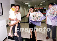 圖:虎口逃生的王勝利在廈門與妻女團(tuán)聚 2001年8月25日 18:42 ![]() 24日上午,在菲律賓南部脫險(xiǎn)的中國公民王勝利乘班機(jī)離開馬尼拉,于上午11時(shí)抵達(dá)廈門國際機(jī)場(chǎng)與妻女相聚。中新社圖 鄭憲 徐萬 攝