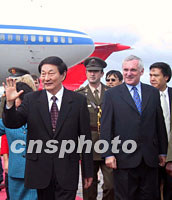 組圖:朱總理抵達(dá)愛(ài)爾蘭進(jìn)行訪問(wèn) 2001年09月03日 10:57 ![]() 中國(guó)總理朱镕基九月二日抵達(dá)都柏林,開始對(duì)愛(ài)爾蘭進(jìn)行正式訪問(wèn)。愛(ài)爾蘭總理埃亨前往機(jī)場(chǎng)迎接。中新社記者 孟慶雷 攝  ![]() 正在愛(ài)爾蘭訪問(wèn)的中國(guó)總理朱镕基九月三日在他下榻的國(guó)賓館與愛(ài)爾蘭總理埃亨親切交談。中新社記者 孟慶雷 攝