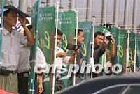 圖:西安市民頂烈日觀看貿洽會 2001年09月05日 18:35 ![]() 西安市民五日在烈日下靠廣告牌遮陽觀看貿易洽談會開幕式,等待進入展廳。本屆展會上的現(xiàn)代化民用產品吸引了眾多參觀者。中新社記者 宋吉河 攝