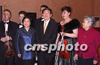 ![]() 正在俄羅斯訪(fǎng)問(wèn)的中國(guó)總理朱镕基和夫人勞安,九月九日晚在中國(guó)駐俄羅斯大使館與俄羅斯演員合影留念。中新社記者 孟慶雷 攝