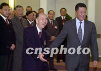 圖:澳門中華總商會代表團向何厚鏵辭行 2001年09月12日 22:23 ![]() 即將前往南京參加第六屆世界華商大會的澳門中華總商會代表團,十二日在名譽團長馬萬祺率領(lǐng)下向行政長官何厚鏵辭行。中新社圖 宗金柱 攝
