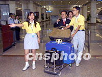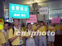 組圖:志愿者迎接即將開幕的華商大會代表 2001年09月16日 15:50 ![]() 服務(wù)于第六屆世界華商大會的志愿者十六日在南京機(jī)場迎接參加大會的來賓,華商會十七日將在南京拉開帷幕。中新社記者 史利 攝  ![]() 出席第六屆世界華商大會的國內(nèi)工商界人士十六日陸續(xù)抵達(dá)南京,來自南京各高校的志愿者在機(jī)場熱情接待來賓。中新社記者 史利 攝