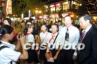 圖:少先隊員和華商在夫子廟合影 2001年09月17日 22:47 ![]() 第六屆華商大會代表十七日晚游覽南京著名風景區(qū)夫子廟,南京的少先隊員好奇地與代表們攀談并合影。中新社記者 李剛 攝  |