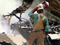 圖:撞擊世貿(mào)大樓的一客機(jī)主體被挖出 2001年09月25日 15:01 ![]() 九月十一日撞擊美國(guó)世貿(mào)大樓的一客機(jī)主體日前被挖出,這截主體殘骸大約有三米長(zhǎng),挖出后馬上被聯(lián)邦調(diào)查局人員運(yùn)走進(jìn)行檢查。 |