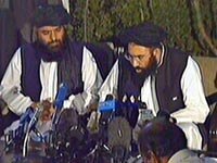 圖:塔利班駐巴基斯坦大使扎伊夫發(fā)表講話 2001年10月08日 10:45 ![]() 英美發(fā)動針對阿富汗的軍事打擊后,阿富汗塔利班駐巴基斯坦大使扎伊夫(右)發(fā)表講話指出,這是對阿富汗人民的恐怖襲擊,阿富汗人民將予以堅決回擊,美國妄圖破壞伊斯蘭制度的企圖終將不能得逞。  |