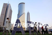 圖:東方明珠廣場(chǎng)上的APEC霓虹燈標(biāo)識(shí)進(jìn)行裝備 2001年10月13日 19:25 ![]() 本屆APEC會(huì)議的新聞發(fā)布廳設(shè)置在上海東方明珠大廈,新的APEC霓紅標(biāo)識(shí)十三日正在大廈前的廣場(chǎng)草坪上進(jìn)行裝備,它的背景是上海浦東的經(jīng)典建筑:金茂大廈、中銀大廈、中保大廈。中新社圖 劉殊瑾 攝 |