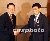 圖:唐家璇會(huì)見印尼外長 2001年10月17日 14:06 ![]() 中國外交部長唐家璇十七日在上海國際會(huì)議中心會(huì)見前來參加亞太經(jīng)合組織(APEC)會(huì)議的印尼外長哈桑·維拉尤達(dá)。中新社記者 毛建軍 攝 |